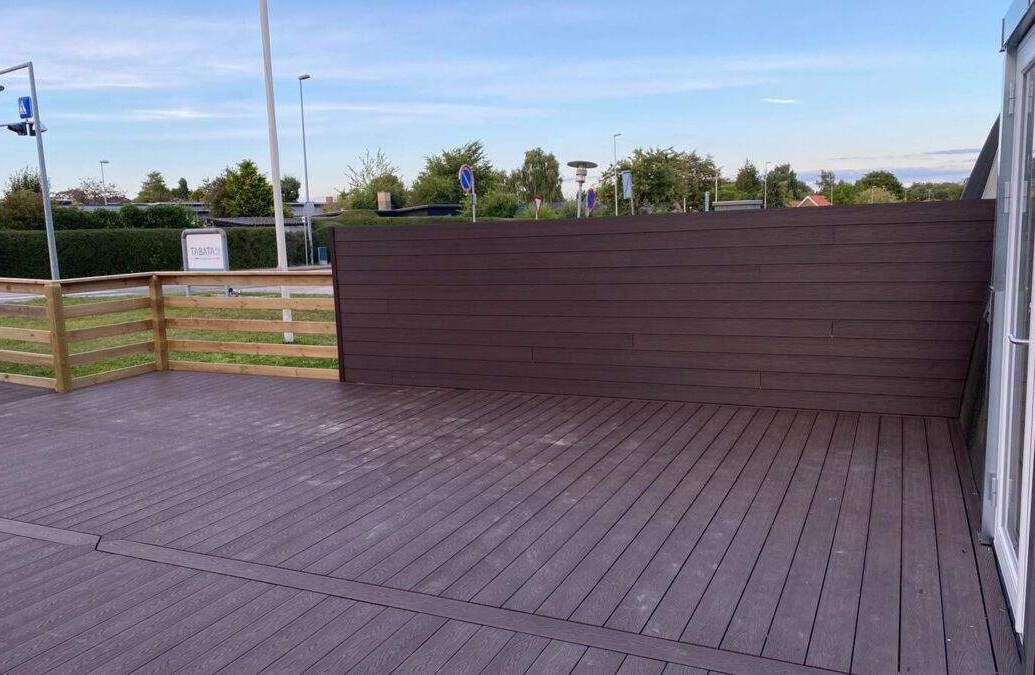 Så fik Højbjerg Badminton Klub ny terrasse Terrassen ligger i forlængelse af den nye restaurent Tabata, som åbner den 15/8. Der er også lavet ny dør i hallen. En lidt speciel opgave at lave et dørhul i en buet facade. Så håber vi bare på godt vejr så terrassen kan...